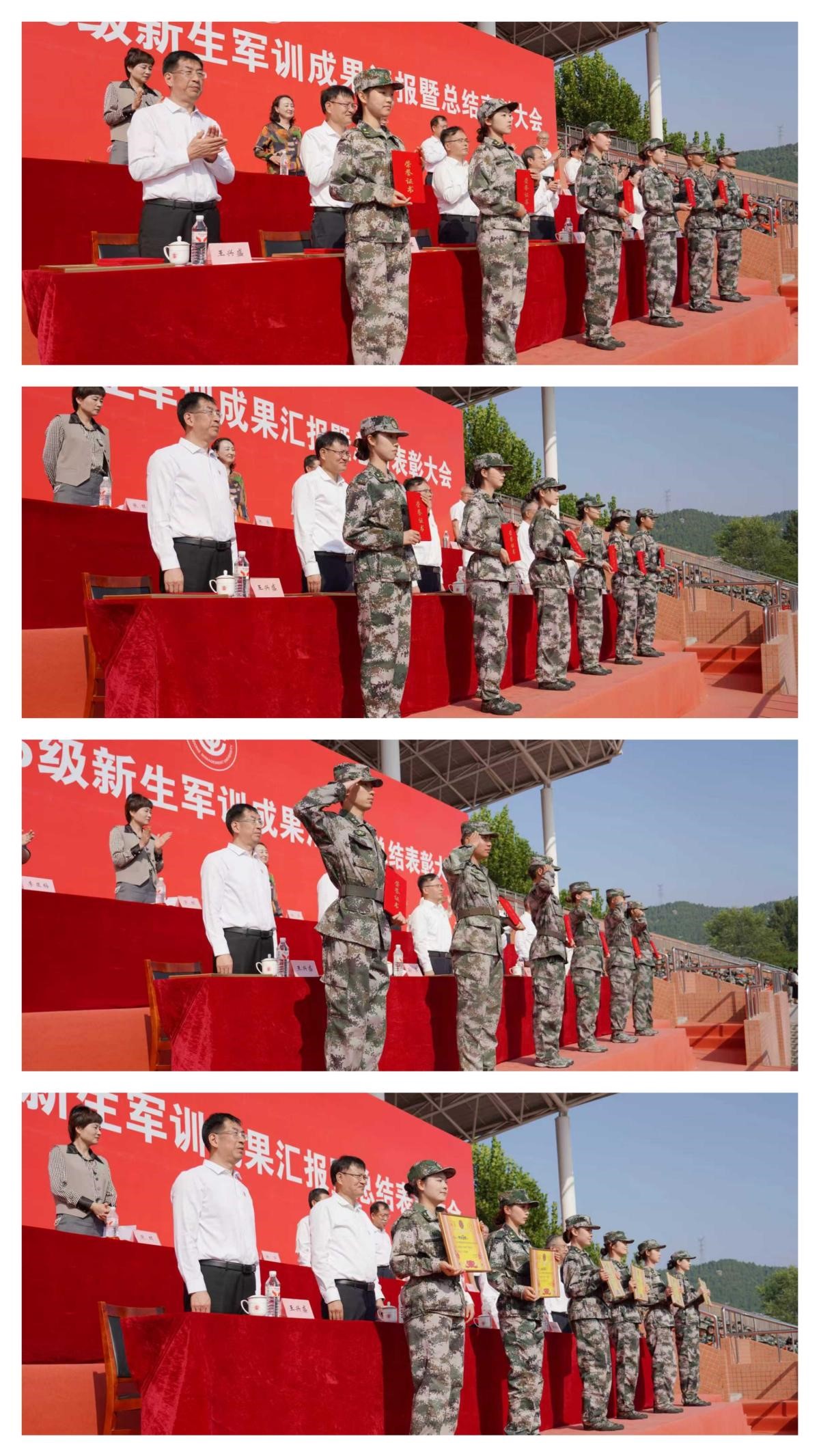 孙琪宣读2025级新生军训表彰决定。校领导们依次为训练标兵、内务标兵、优秀学生教官、优秀连队等受表彰代表颁发荣誉证书,这既是对新生训练成果的肯定,也激发了全体新生的奋进热情。