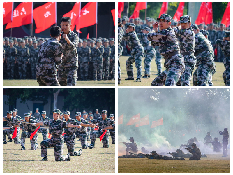 分列式结束后,依次进行教官技能展示、擒敌拳、匕首操、红军大刀及战术演练科目汇报。教官们身姿矫健、动作利落,展示出过硬的军事素质;擒敌拳展示中,新生们动作刚劲如松、出拳迅猛似风,精准利落、铿锵有力,尽显少年锐气与无畏气魄;匕首操展示中,新生们身姿矫健,寒光流转间,将果敢坚毅的精神风貌诠释得淋漓尽致;红军大刀展示气势磅礴,挥刀时风声呼啸、劈砍间尽显豪迈,以昂扬姿态复刻革命先辈的热血风骨,让红色精神在动作中传承;战术演练环节,新生们灵活运用战术动作,默契配合完成模拟任务,在协同作战中展现出扎实的技能功底与极强的团队凝聚力。新生们的出色表现,既是刻苦训练的汗水结晶,更是教官悉心指导的成果见证,充分彰显了我校学子不怕吃苦、勇往直前的优良品质。