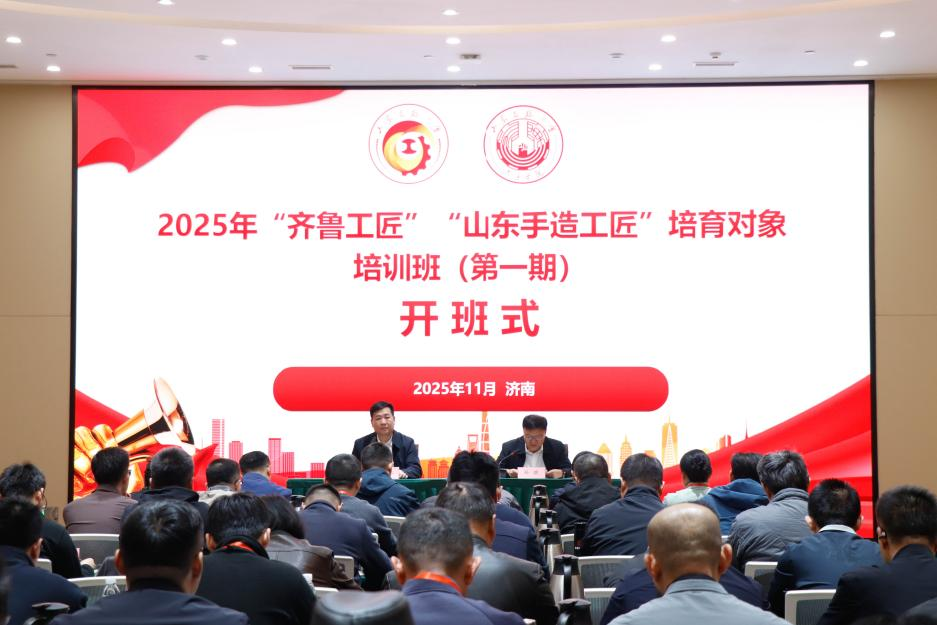 11月14日,由山东省总工会主办,齐鲁工匠研究院承办的2025年“齐鲁工匠”“山东手造工匠”培育对象培训班在我校举办。学校党委副书记孙琪、山东省总工会生产保护部二级调研员孙晓冬出席开班仪式。