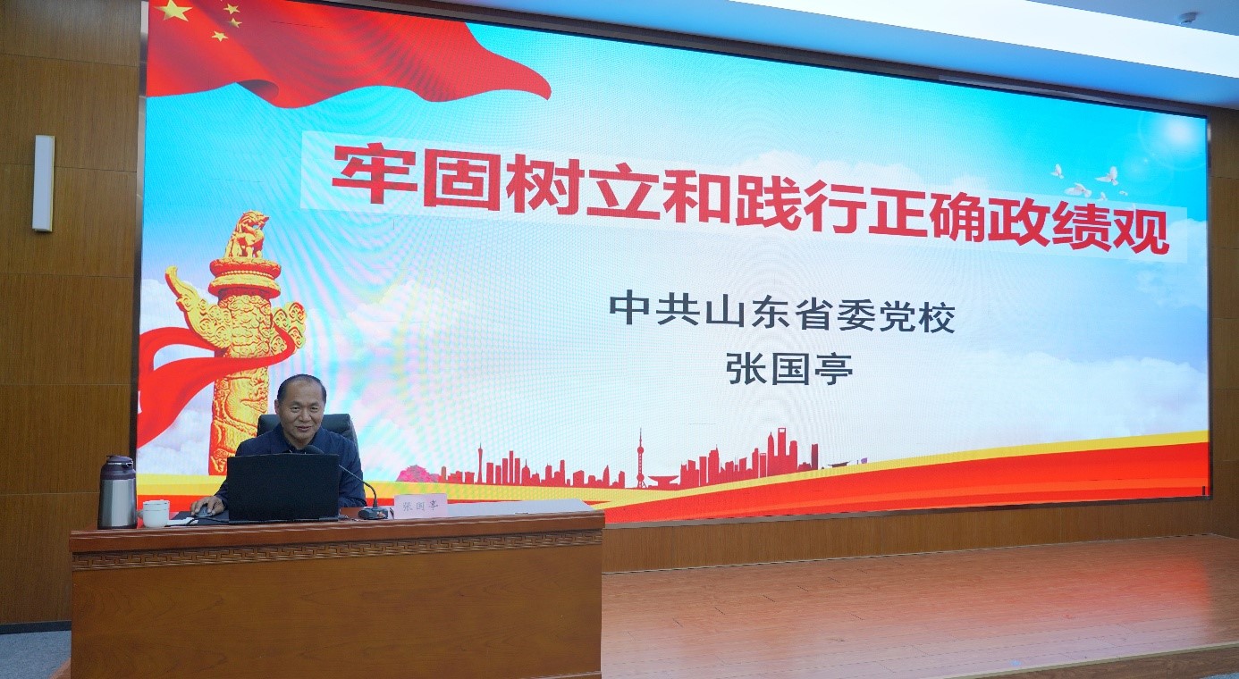 读书班期间,学校邀请中共山东省委党校张国亭教授作了题为《牢固树立和践行正确政绩观》的专题辅导报告。报告从三个方面深入讲解了树立和践行正确政绩观的内涵要求、重大意义及支撑保障,为广大党员干部上了一堂生动深刻的党课。