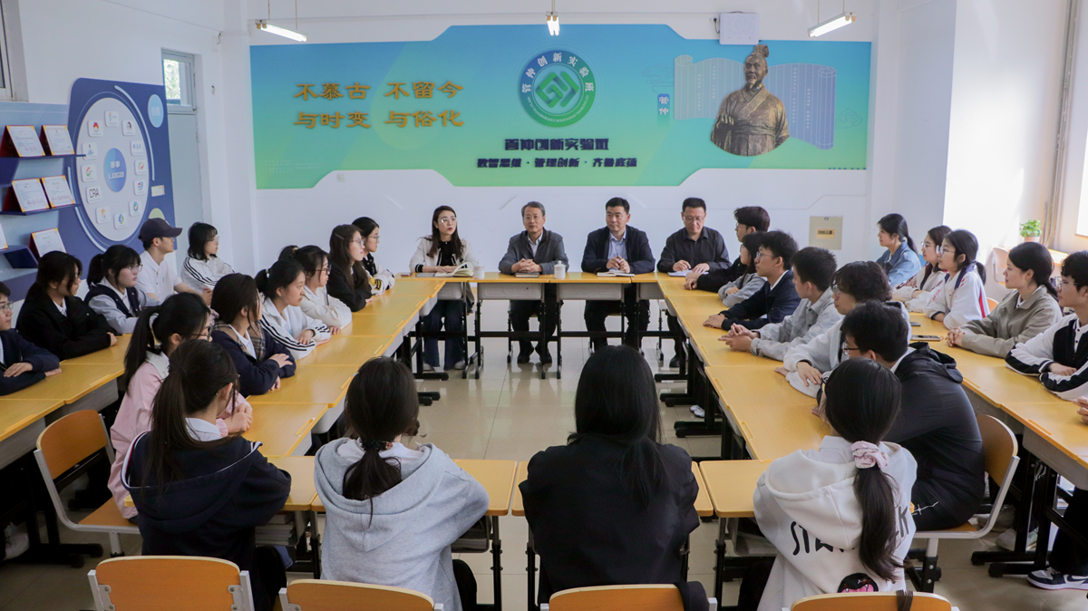 座谈会上,班主任汇报了“管仲”班小班化、导师制、项目驱动的教学模式及成效,班长介绍了班级文化和自主管理成果,学生代表分享了成长感悟并对班级的发展提出建议和意见。