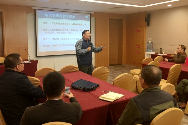 教务处处长徐健、工商学院院长孙家学先后以“坚定的理想信念建立在理性认知基础上——概论课逻辑结构研究”和“高校课堂教学有效性评价思考”为题,分享了教学理念和经验。徐健针对概论课教学实践中存在的“学分高、学时多、效果差”等问题,提出思政课的功能定位应当为传递“有效知识”,概论课的核心和逻辑起点为“国家治理”,要坚持学以致用,在教学中研究探索实践方案,用好这座“学术金矿”。孙家学直指“案例陈旧”、“学生不爱听”等教学现象,从课堂教学重要性、课堂教学含义、课堂管理几点看法、提高课堂教学能力感悟、教师职业五个方面进行了探讨,提出教师要做好课堂教学基础工作,不断提高教学水平。参与活动的教师就授课分享内容进行了交流讨论,一致认为活动效果很好,感到学有所获、深受启发,为做好教学工作坚定了信心,明确了方向。