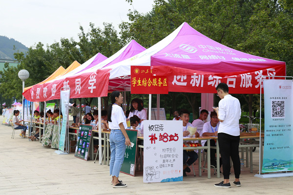 学生工作处设置了综合服务站,在这里扫码查宿舍、咨询处、补给站、学生志愿者服务站一应俱全,真正体现了以学生为本的服务宗旨。