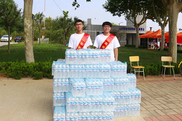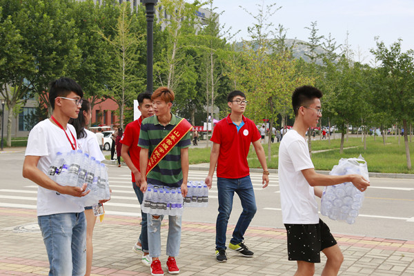 校园内随时随处可领到的免费矿泉水在这个忙碌的日子里为新生及家长送去了一丝甘甜与清凉。