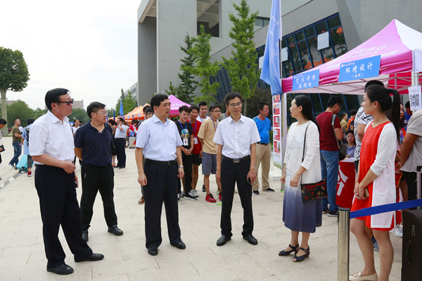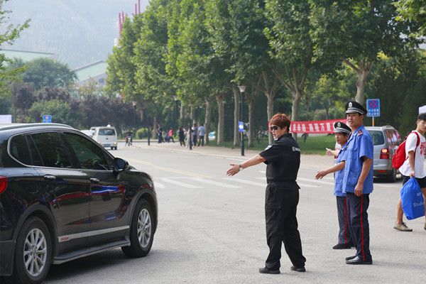 校领导冯庆禄、邹广德、杨西国、杨茂奎到迎新现场检查工作,嘱咐一定为新生和家长服好务。
