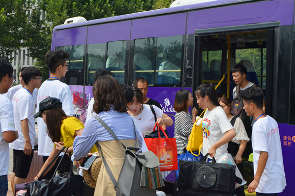 为了给新生报道提供便利,清晨,由我校50名学生志愿者组成的接站队从学校出发,前往火车站进行接站服务。