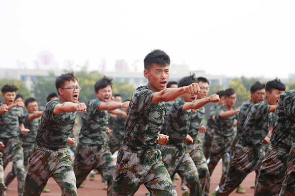 军训团总教官庞洪和在讲话中赞扬了我校治校严谨的优良作风,肯定了我校新生在军训期间服从命令、听从指挥的训练态度以及高度的集体荣誉感和强烈的团队意识。他希望同学们时刻保持军训期间坚毅的品质,在未来的学习、生活中,奋发向上、顽强拼搏,取得优异的成绩。