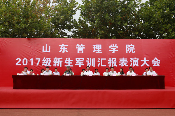 9月18日上午,2017级新生军训汇报表演大会在运动场隆重举行。校领导冯庆禄、邹广德、李明勇、杨西国、房克乐、杨茂奎,以及军训团总教官庞洪和出席大会。大会由副院长杨西国主持。