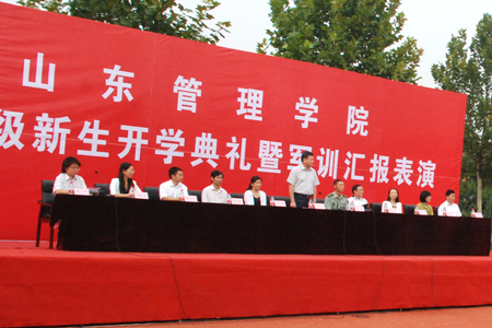 9月23日上午,学校2014级新生军训汇报表演大会在长清校区田径场隆重举行。党委副书记、纪委书记荀方杰,26集团军防空旅中尉蔡波、各二级学院负责人出席并观看了军训汇报表演。大会由学生工作处副处长陈沙主持,各学院分管学生工作的副院长及2014级辅导员、班主任参加了大会。