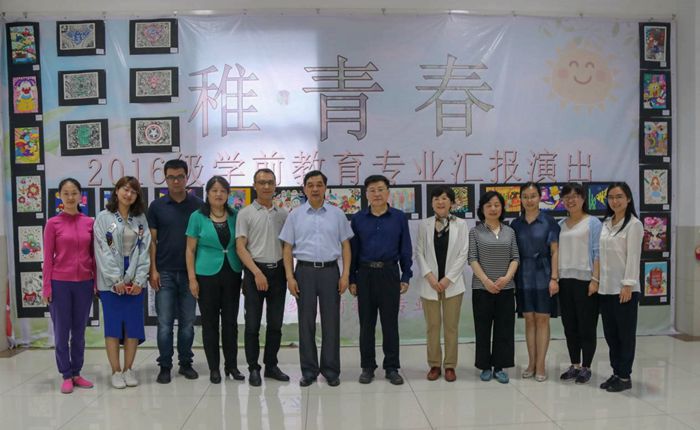 汇报演出之前,校领导等参观了2016级学前教育专业入学以来的部分作品及教学成果展,并与学前教育专业教师就专业发展进行了交流,对学前教育专业取得的教学成果给予了肯定。