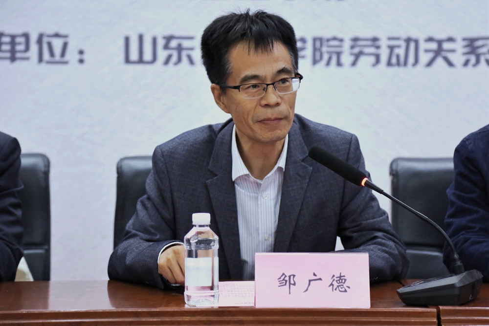 邹广德在开幕式致辞中首先对参赛人员、嘉宾、评委的到来表示热烈欢迎,并对山东管理学院的发展历史、办学特色、学科建设、办学规模、工会干部教育培训等情况进行了全面介绍。他指出,学校突出工会与劳动关系特色,构建以劳动关系专业为主体,人力资源管理、法学、社会工作等相关专业互为支撑与融合的劳动关系学科专业体系,同时加大与政府、基层工会组织、相关行业企业的合作和融合,初步形成“大劳关学科”产学研一体化的协同发展模式。