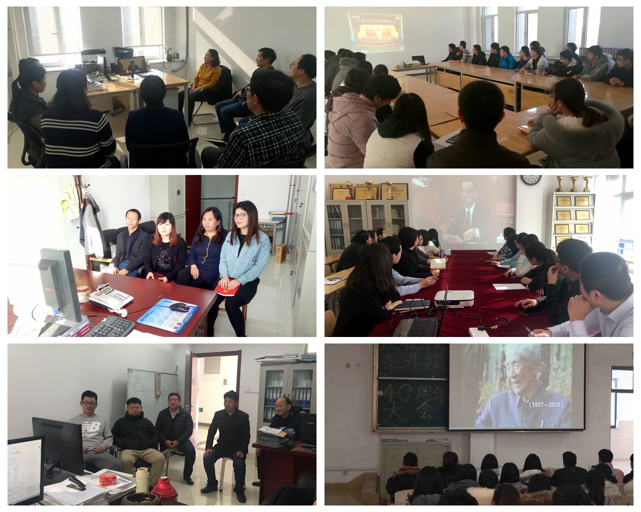 12月18日,学校党委理论学习中心组在明德楼366会议室集体观看庆祝改革开放40周年大会现场直播,全体成员参加学习。