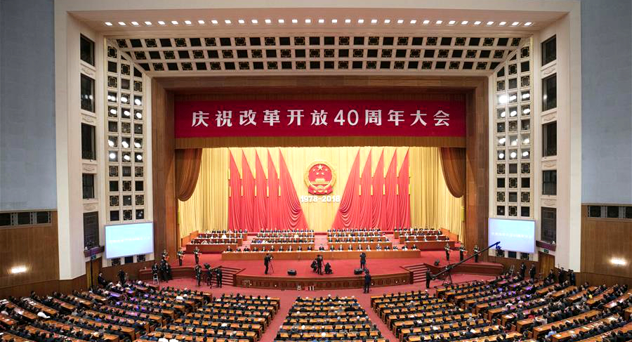 上午10时,庆祝改革开放40周年大会在人民大会堂举行。中共中央总书记、国家主席、中央军委主席习近平出席大会并发表重要讲话。大会隆重庆祝改革开放40周年,表彰了为改革开放作出杰出贡献的人员,习近平总书记在讲话中深刻总结了改革开放40年来党和国家事业取得的伟大成就和宝贵经验,高度赞扬了中国人民为改革开放事业作出的杰出贡献,郑重宣示了改革开放只有进行时没有完成时、改革开放永远在路上的信心和决心,明确提出了坚定不移全面深化改革、扩大对外开放、不断把新时代改革开放继续推向前进的目标要求。