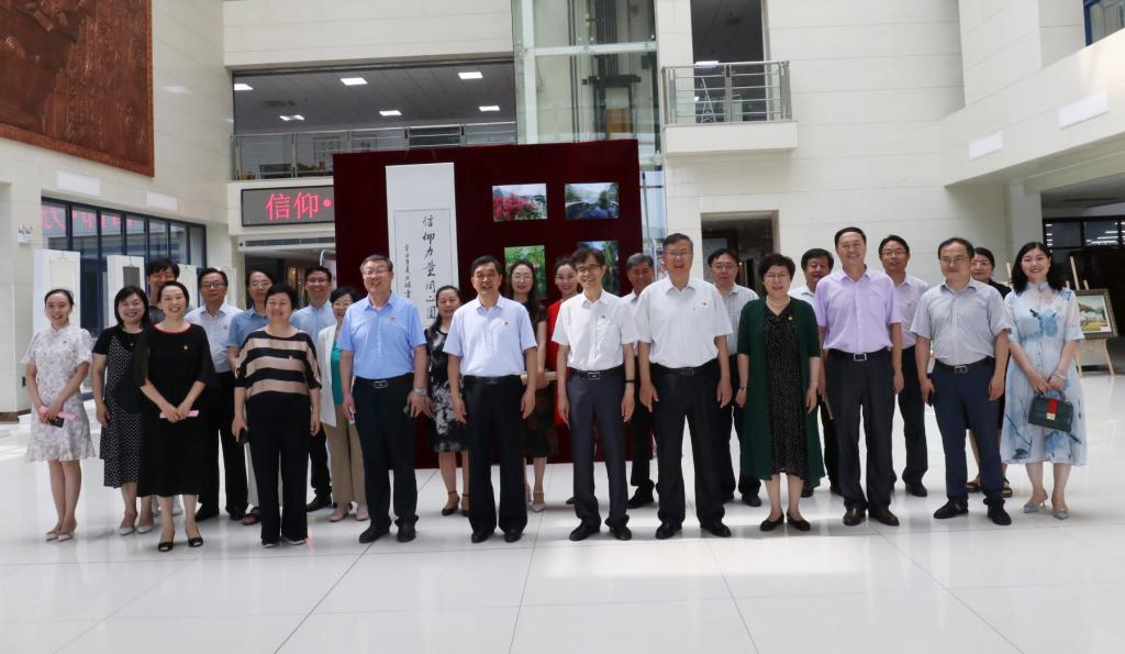 为庆祝中国共产党建党100周年,深入推动党史学习教育和《中国共产党统一战线工作条例》学习宣传贯彻,广泛凝聚思想共识,大力弘扬爱国奋斗精神,砥砺奋进新征程。6月30日上午,山东管理学院“信仰•力量•同心圆”书画摄影展开幕式在学校图书馆大厅隆重举行。校领导冯庆禄、邹广德、杨茂奎、董以涛、朱晓梅、邹坤萍,以及各党总支书记和专职副书记(统战委员)、各统战团体班子成员,民主党派人士、无党派人士、侨眷、少数民族师生代表,“两代表一委员”等出席开幕式。开幕式由党委统战部常务副部长陈艳如主持。