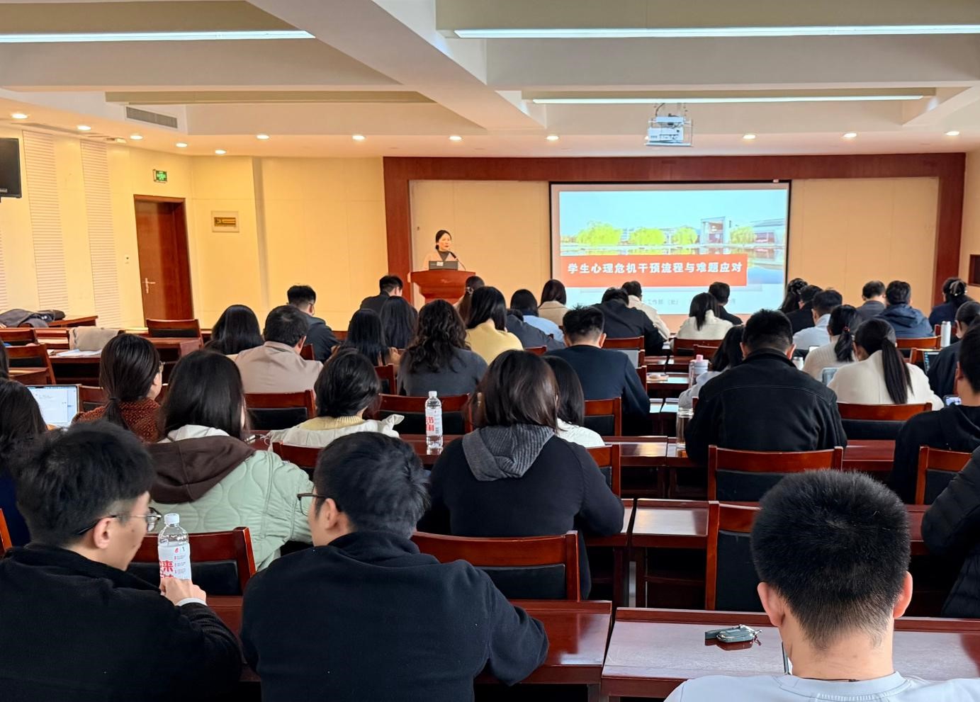 培训会上,朱敏围绕“心理危机及识别”“学生心理危机干预流程”“危机干预中的难题与应对”三大方面进行了系统深入地讲解。整个培训内容详实,重点突出,既有理论高度,又紧密贴合一线学生工作实际需求,为辅导员们规范、高效地处置心理危机事件提供了明确的行动指南。