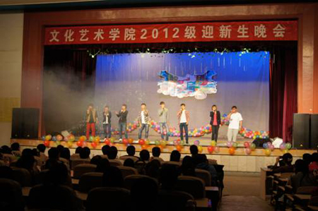 10月19日晚七点,文化艺术学院在东校区大礼堂举行“馨艺启程”2012级迎新生晚会。文化艺术学院院长戴丕昌,副院长陈艳如、原兴照,以及部分教师和全体同学观看了晚会。