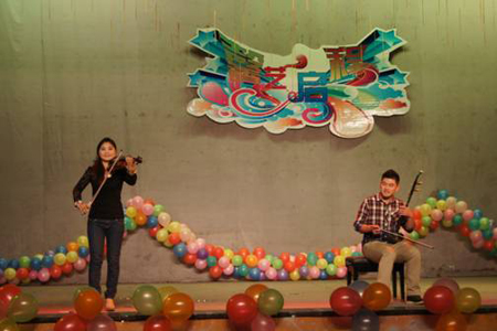 晚会中,大家热情高涨,精彩的节目引起了阵阵喝彩。其中,二胡演奏节目为观众展现了一副草原赛马图,别具创意的小提琴演奏让《赛马》更有韵味。武术节目《武魂》是由两位“好汉”表演了醉剑、太极拳、长棍,为大家展现了中华武术的博大精深,展现了男儿当自强的英雄气概。歌曲《自由》通过演唱者与观众的热情互动,将晚会推向了高潮。最后,晚会在12级音教全体同学合唱的《就在今天》中圆满落下了帷幕。