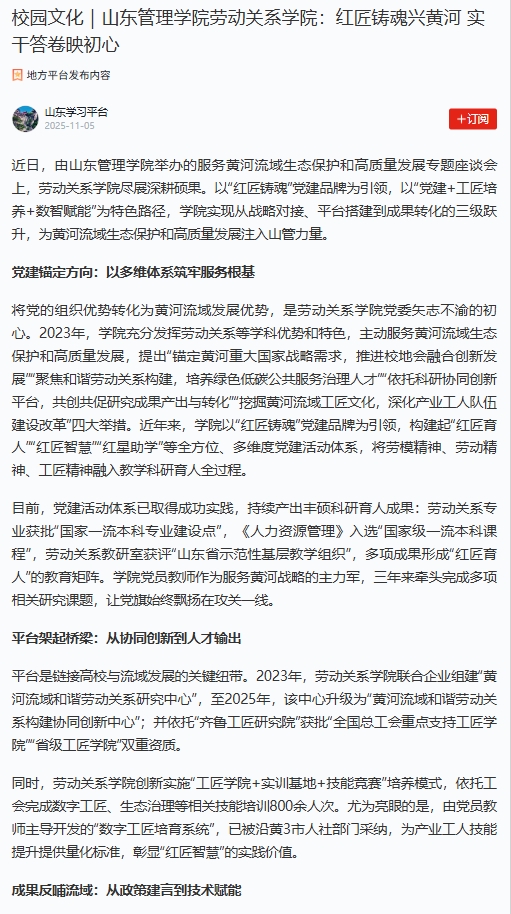 下一条:【大众网】山东管理学院劳动关系学院:红匠铸魂兴黄河 实干答卷映初心