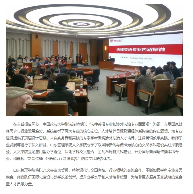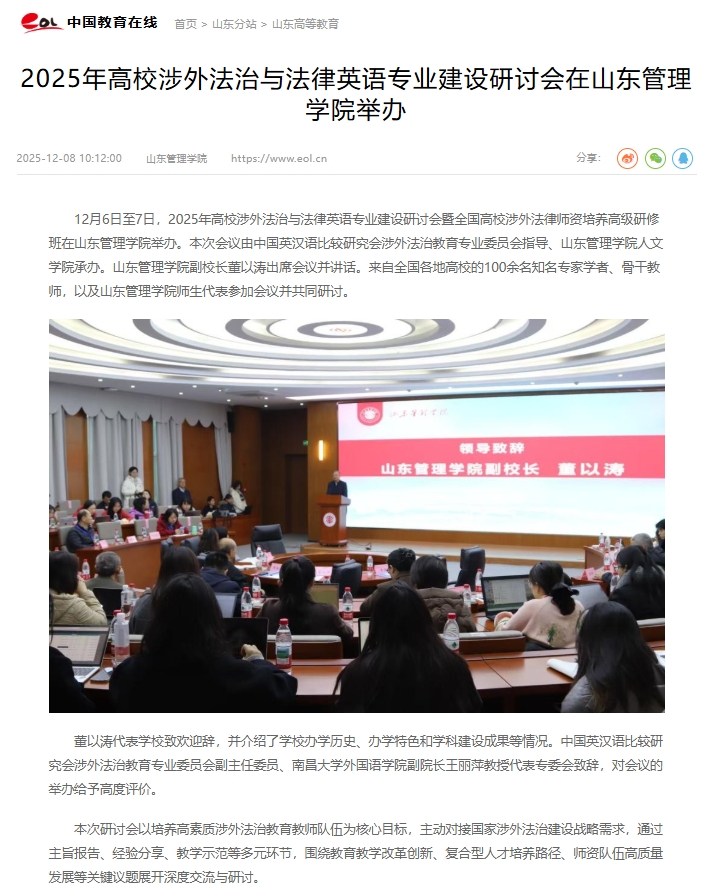 下一条:【中华网】山东管理学院举办高校涉外法治与法律英语专业建设研讨会暨全国高校涉外法律师资培养高级研修班
