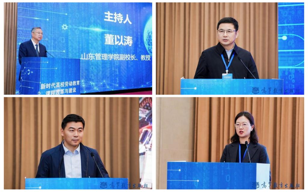大会还围绕“高质量劳动教育课程与教材建设”进行典型经验交流,济宁职业技术学院校长李中国教授、山东管理学院艺术学院常远副教授、高等教育出版社上海出版事业部副主任刘自挥分别围绕新时代高职院校劳动教育创新实践、劳动教育与专业课程深度融合、劳动教育教材经典框架构建及数字化转型发言。