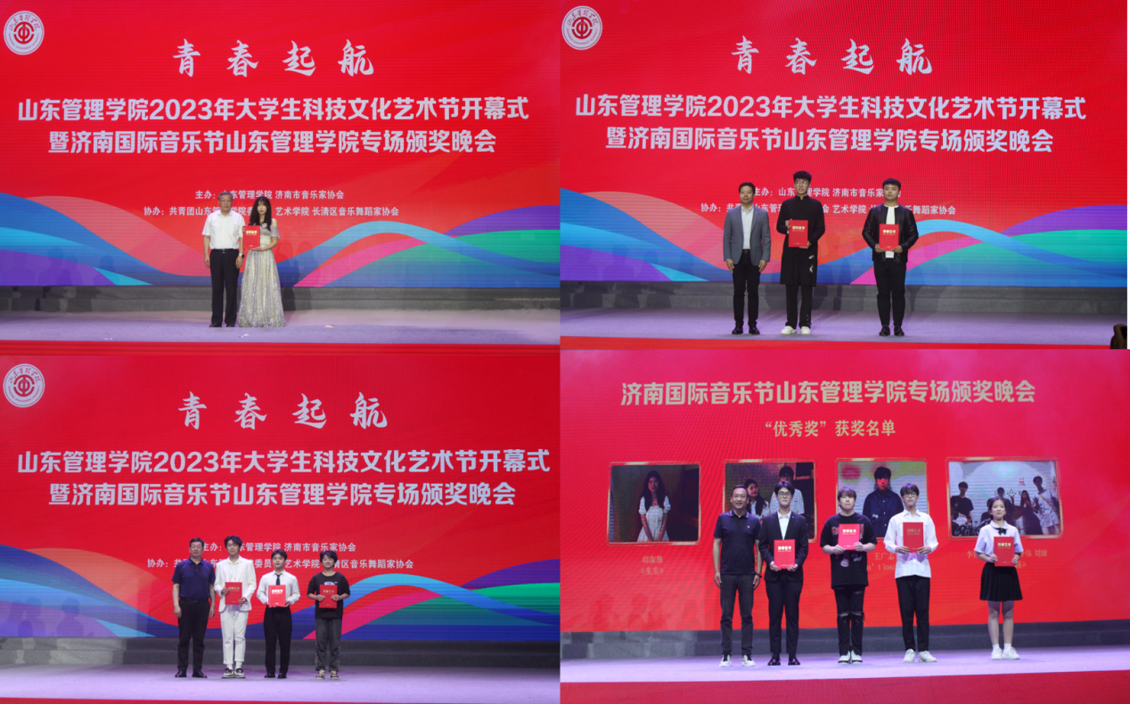 6月8日,学校在文体中心举办2023年大学生科技文化艺术节开幕式暨济南国际音乐节山东管理学院专场颁奖晚会。党委书记魏勇,副院长杨茂奎、邹坤萍,纪委书记、省监委驻学校监察专员王兴盛,济南市音乐家协会主席陈雷,济南市长清区音乐舞蹈家协会会长盖钧、副会长董昊出席活动。